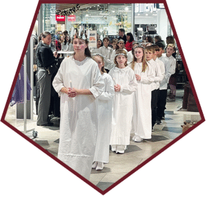 Vi får besøg af de dygtige 5.-klasseelever fra Herlev Privatskole, som iført hvide kjortler bærer lyset gennem centret i et stemningsfuldt optog. De synger den klassiske Lucia-sang, der hvert år får både store og små til at stoppe op og nyde øjeblikket.